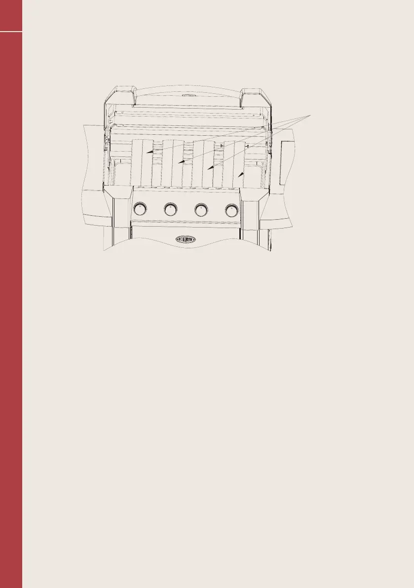 Remove the polystyrene from the burners and place the flame tamers [nr. 12] on the