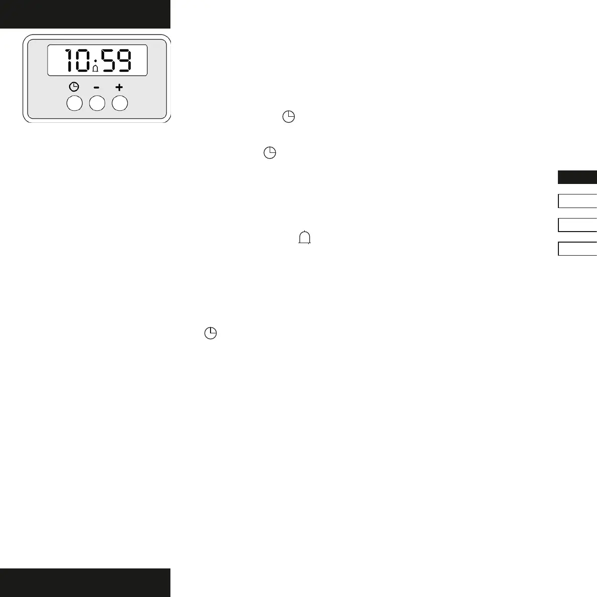 gelijk op de knoppen + en – om de minuten in te