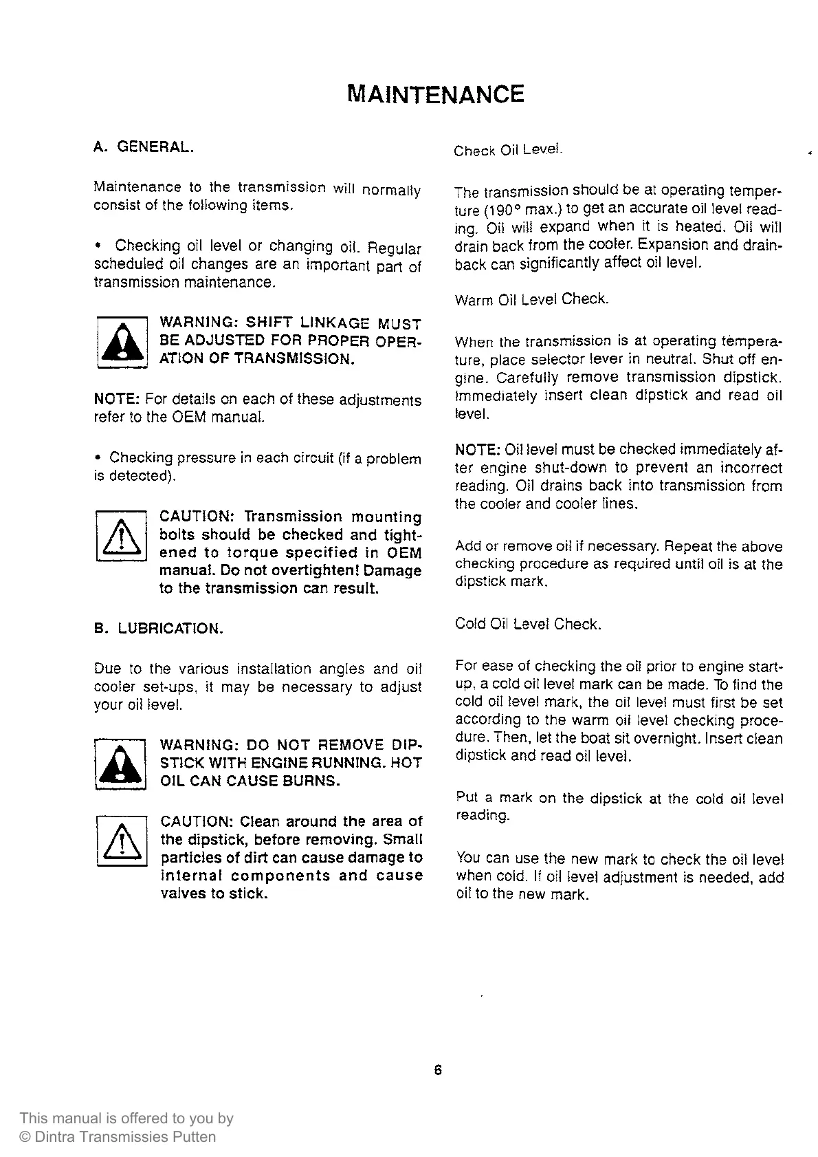 Borg Warner 71C - Maintenance and Lubrication; Lubrication and Oil Level Checks