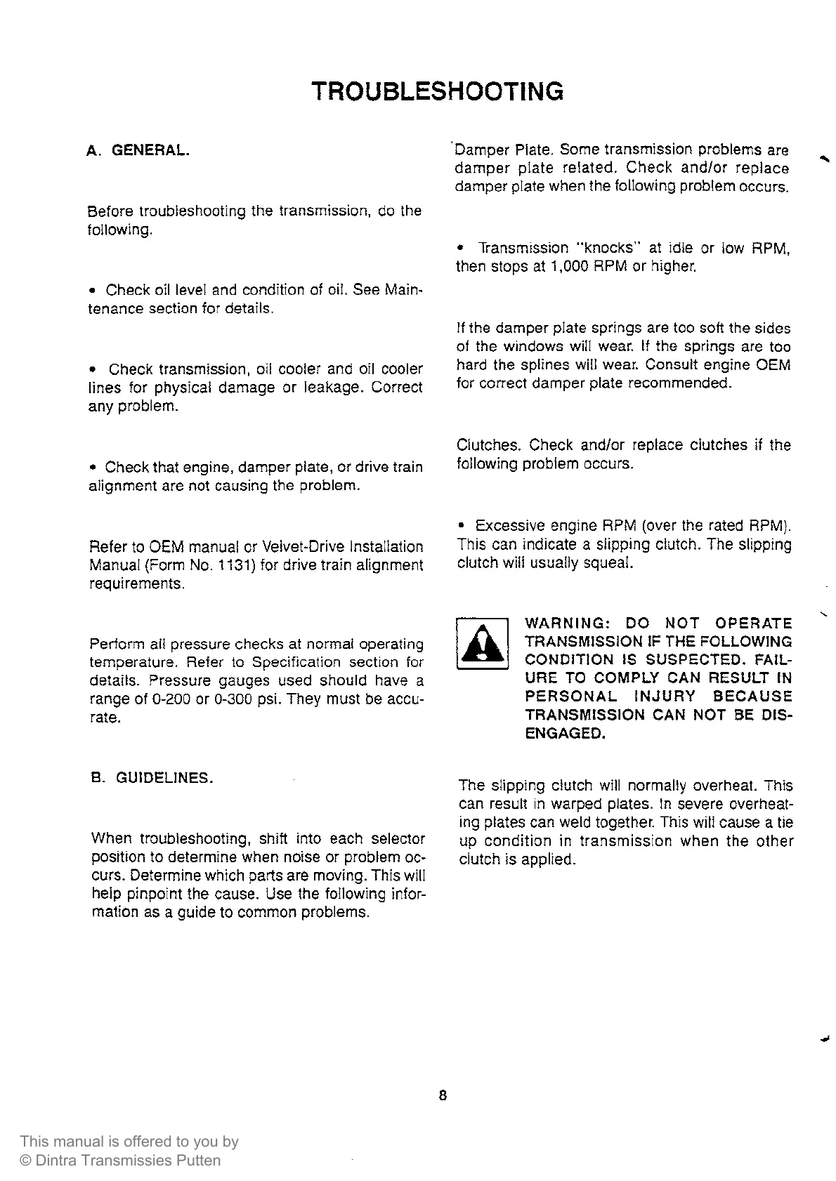 Borg Warner 71C - Troubleshooting Velvet Drive Transmissions; General Troubleshooting Steps for Velvet Drive; Troubleshooting Guidelines and Common Issues