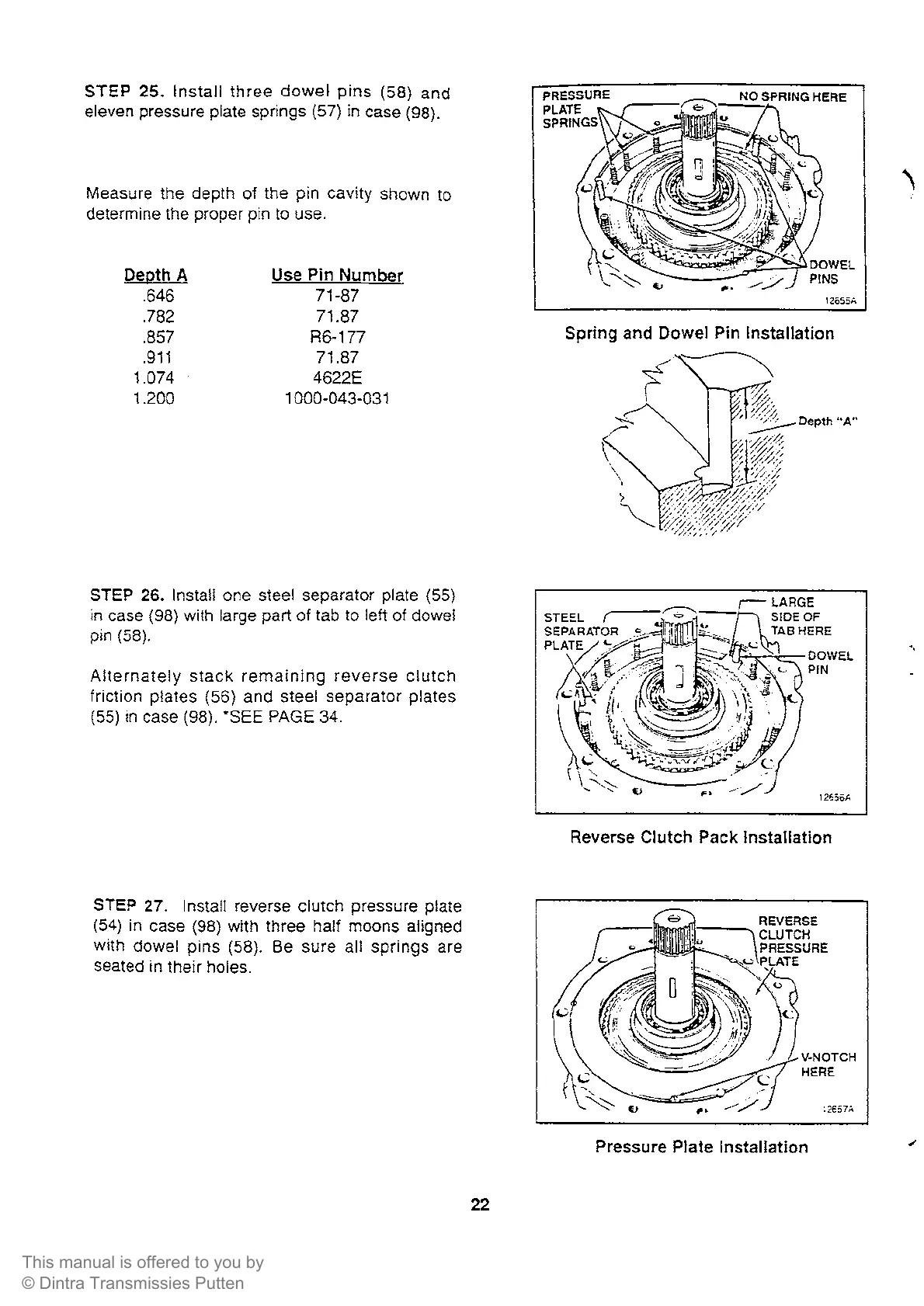Borg Warner 72C - Spring and Dowel Pin Installation; Reverse Clutch Pack Installation; Pressure Plate Installation