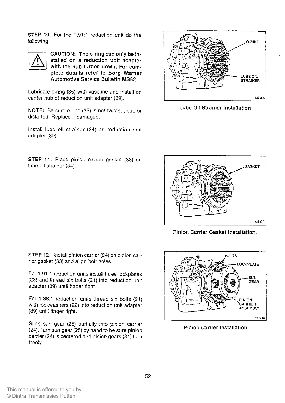 Borg Warner 72C - Lube Oil Strainer Installation; Pinion Carrier Gasket Installation