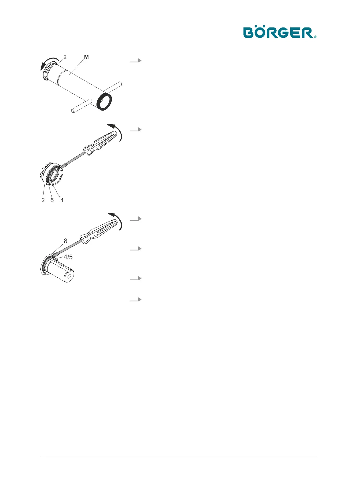 7. Remove the seal face (4) with O-ring (5) out of the corre-