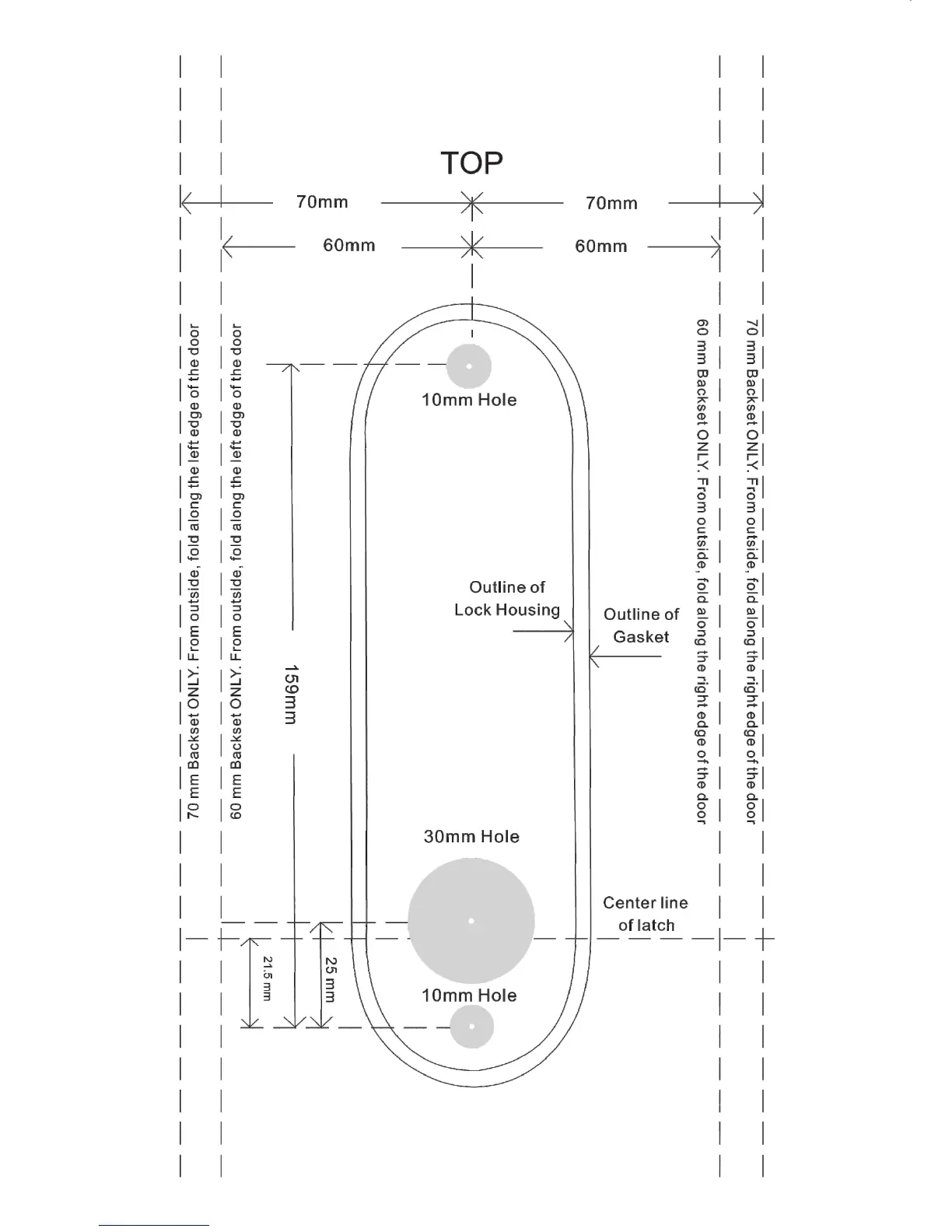 Borglocks BL5001 - Drilling Diagram; Door Preparation Dimensions