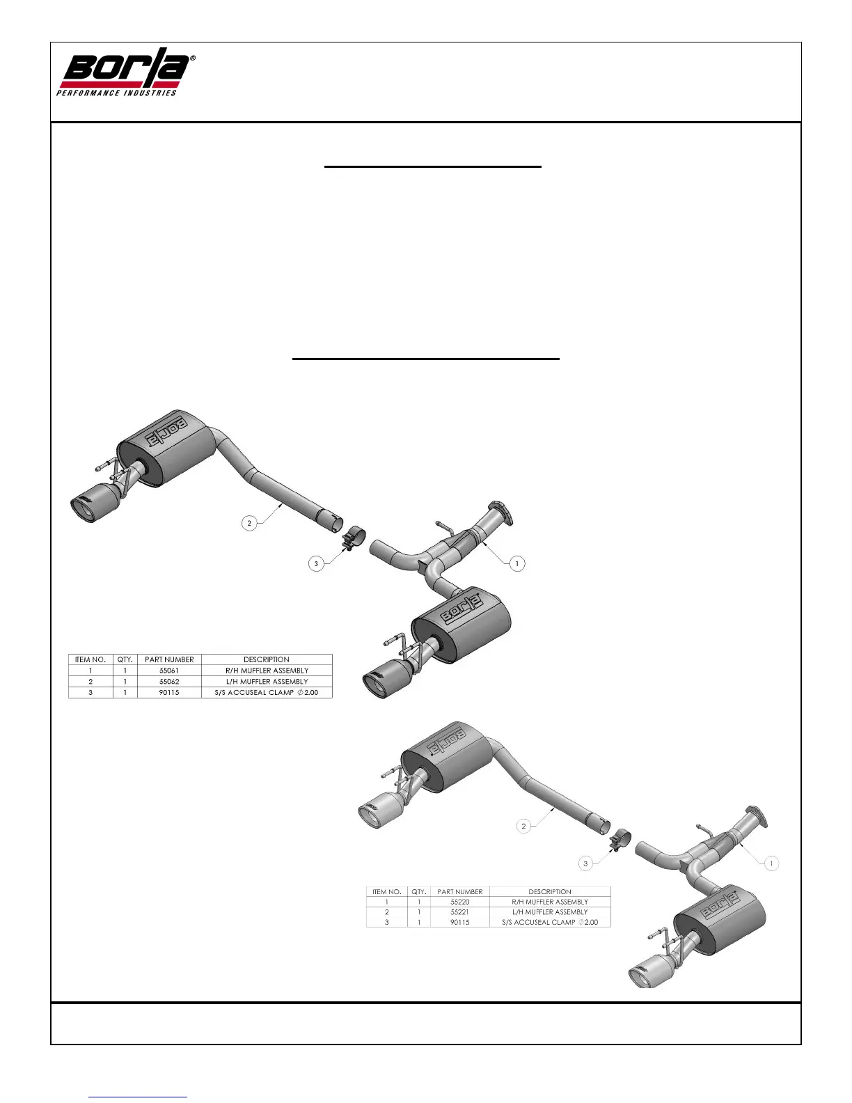 BORLA 11853 - Required Tools and Parts; Minimum Required Tool List; Shop Supplies; Bill of Materials