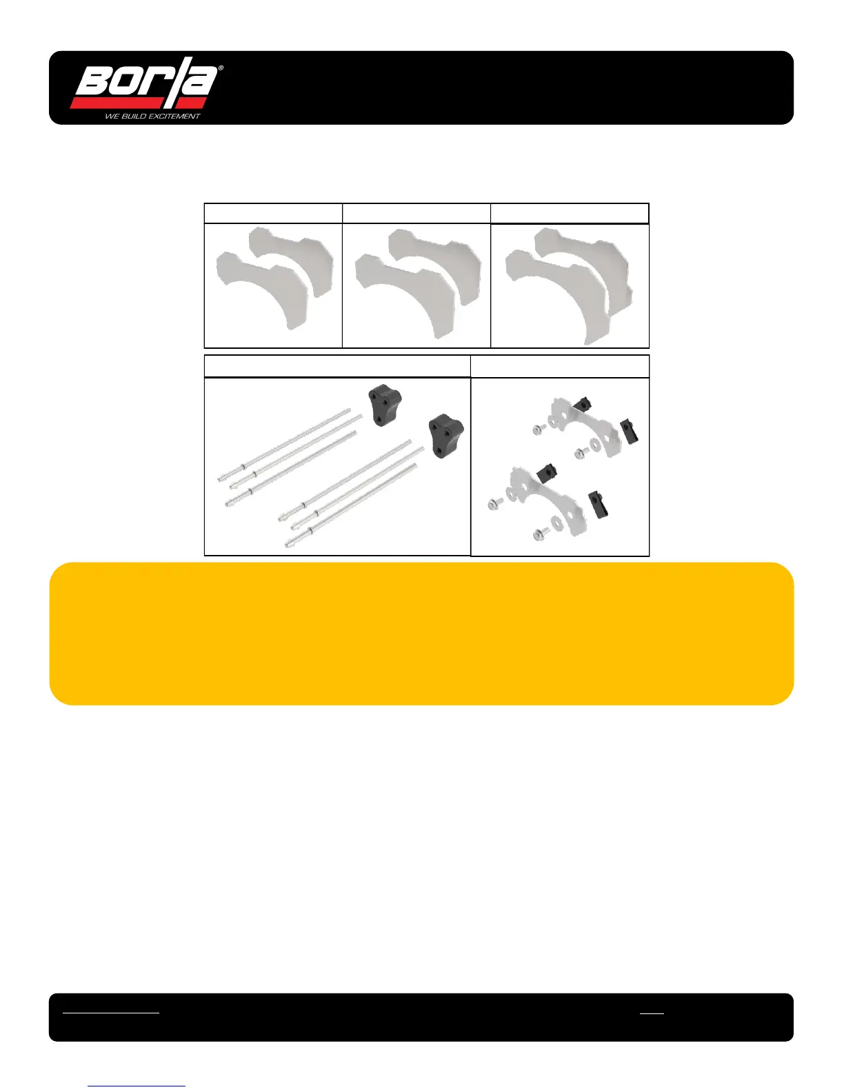 By installing your Borla Performance Exhaust Accessory, you indicate that you have read this document and you agree with the terms stated
