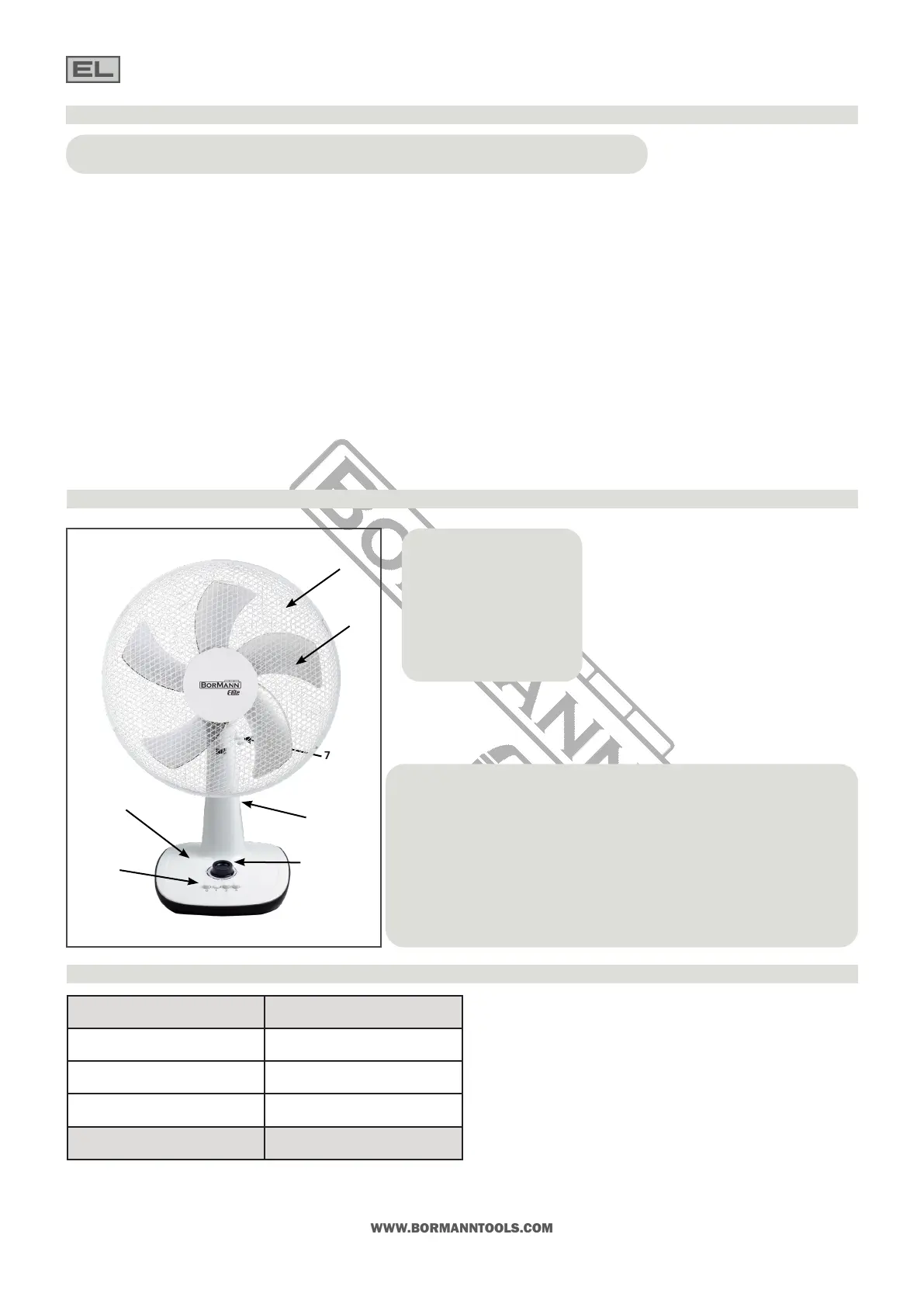 4. Βεβαιωθείτε ότι ο ανεμιστήρας βρίσκεται σε σταθερή επιφάνεια κατά την διάρκεια λειτουργίας για να αποφύγετε την ανατροπή ή την πτώση.