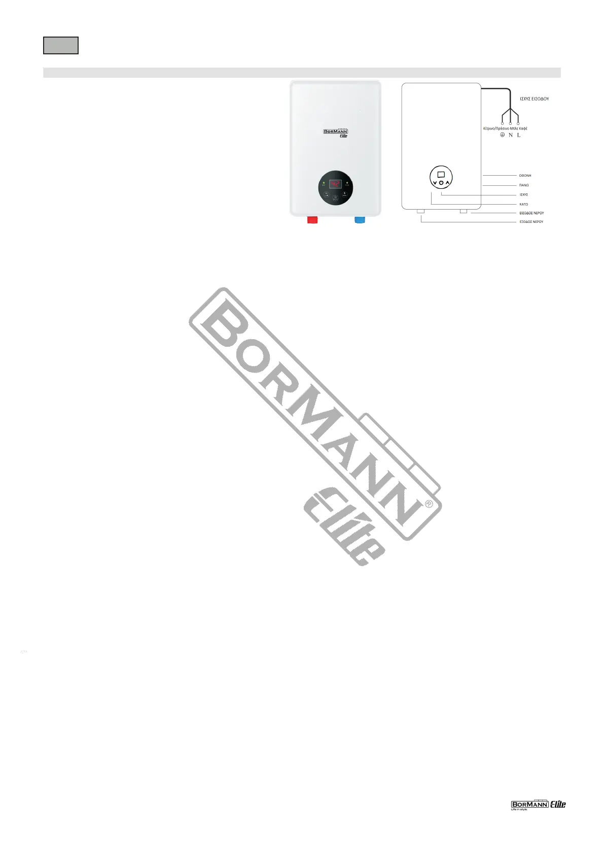 διαθέτει λειτουργία προστασίας έναντι υπερθέρμανσης. Όταν η θερμοκρασία του νερού εξόδου υπερβεί τους 55