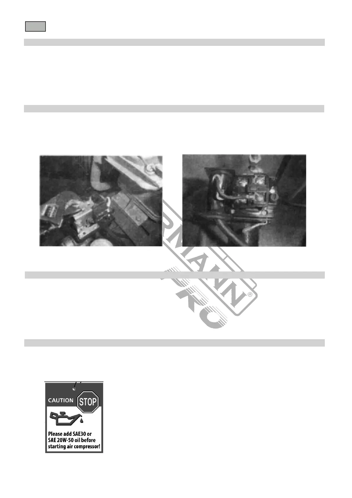 4) След 120 часа работа почистете картера, подновете маслото, почистете въздушния филтър и проверете предпазния клапан и манометъра.