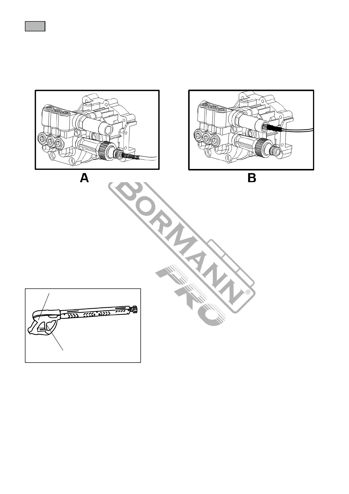 3) Visokotlačno cev priključite na izhod črpalke (glejte sliko B).