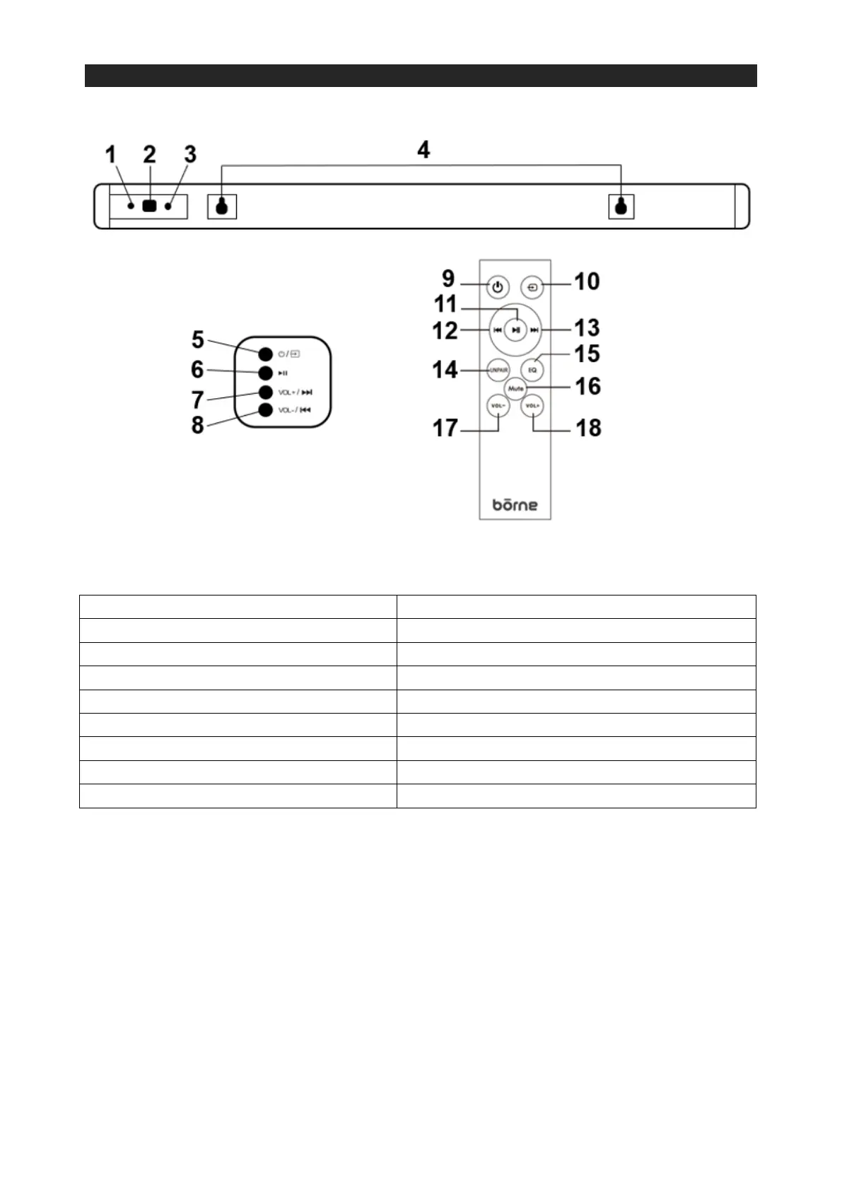 borne BS-672 - Product Diagram and Component Identification; Unit Controls Identification; Remote Control Buttons Identification