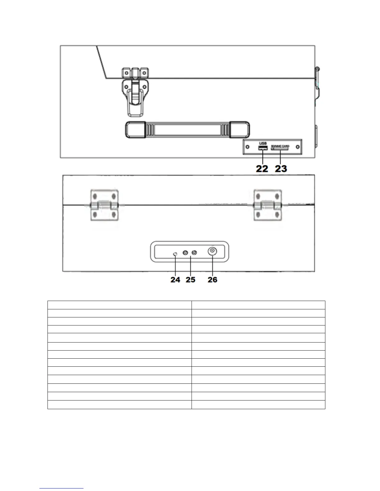 10. Mode Button (REC/USB/SD/Bluetooth) 23. SD Card Input