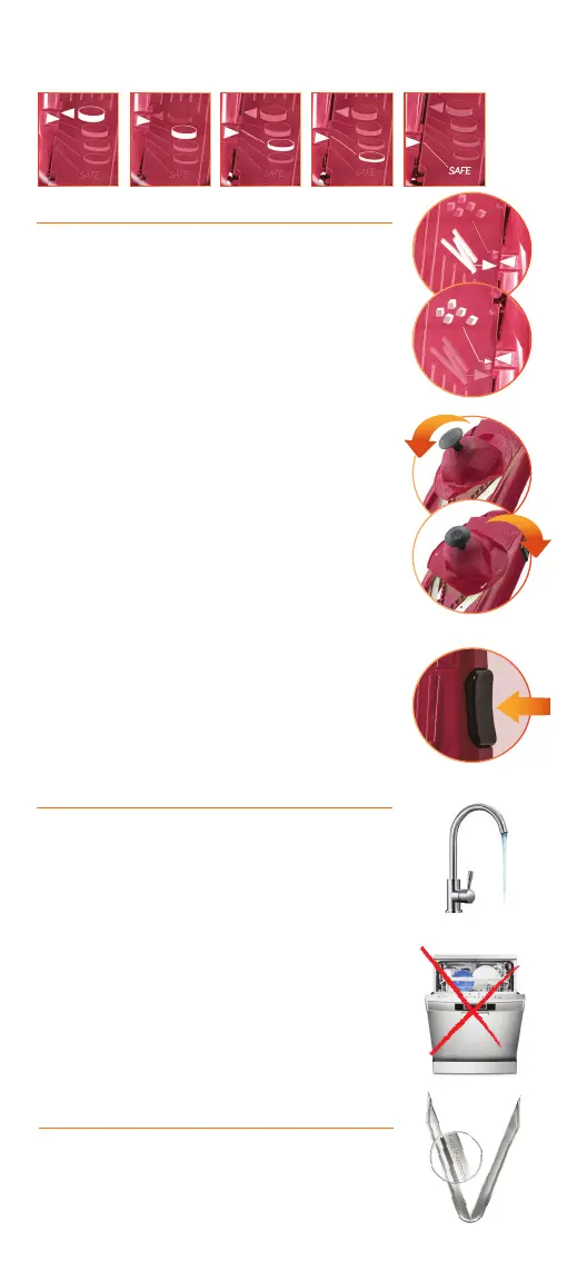 Messer nicht zu berühren. Reinigen Sie den