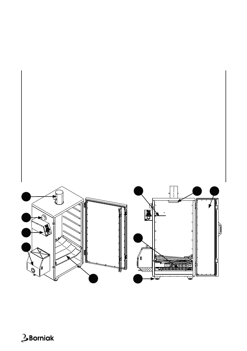 the smoker. The drip tray (4) protects the smoking unit burner and the generator against the