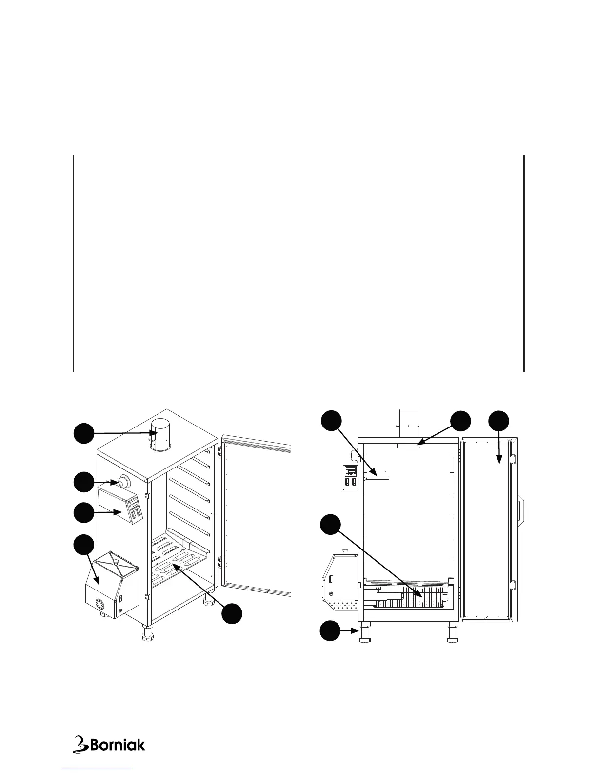 (1) at the top of the smoker regulates the smoke density in the chamber. A burner with a