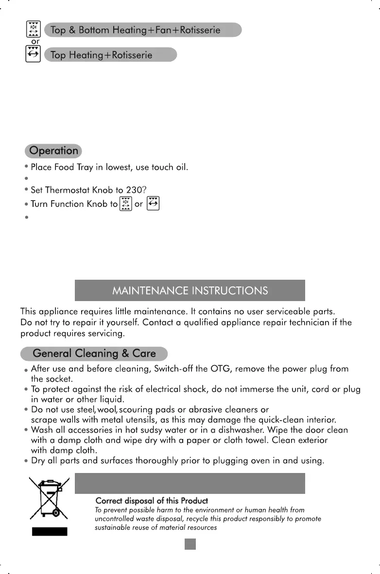 Turn Timer Knob to ON position. Set the timing as per the recipe book.