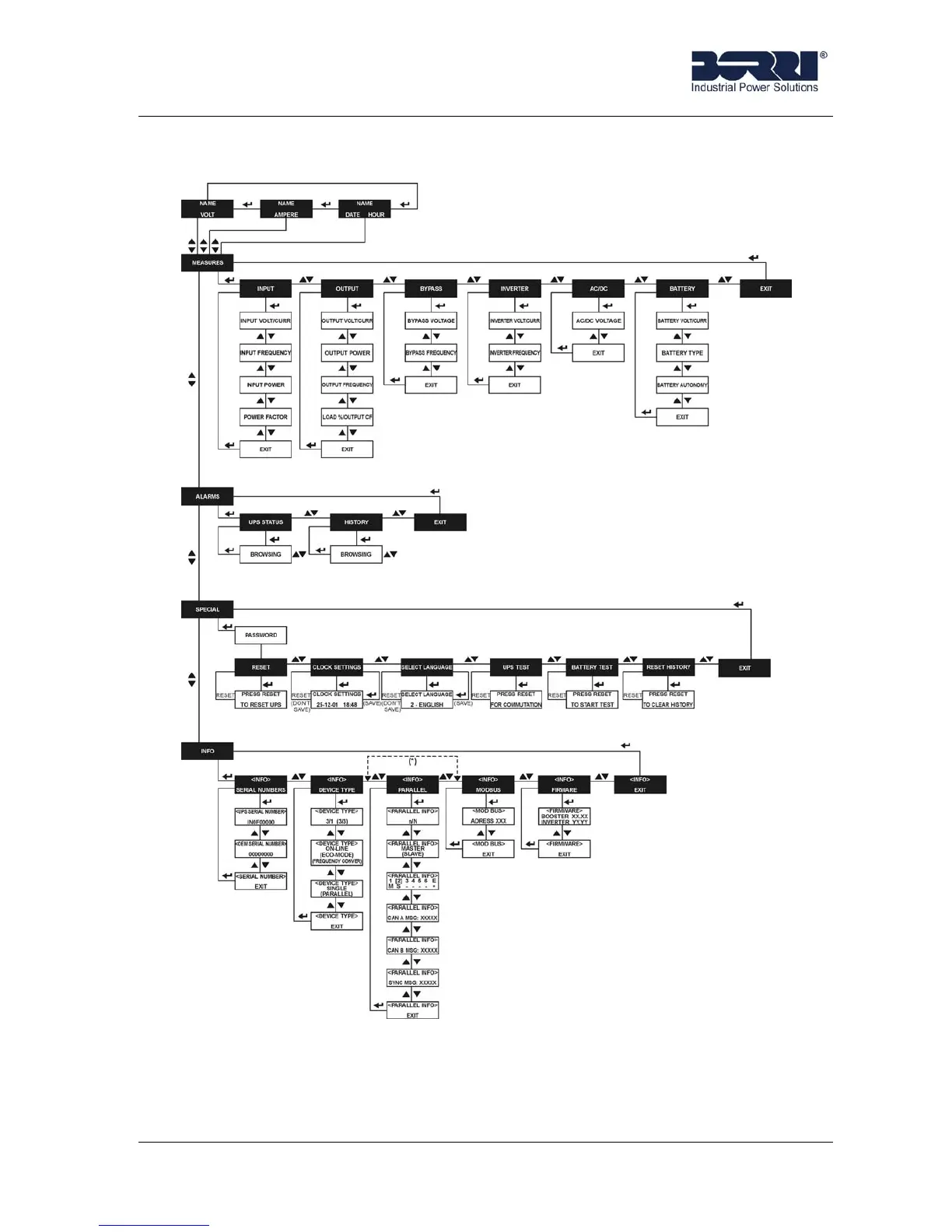 (*)The Parallel menu is active only of the UPS is in Parallel Configuration, otherwise