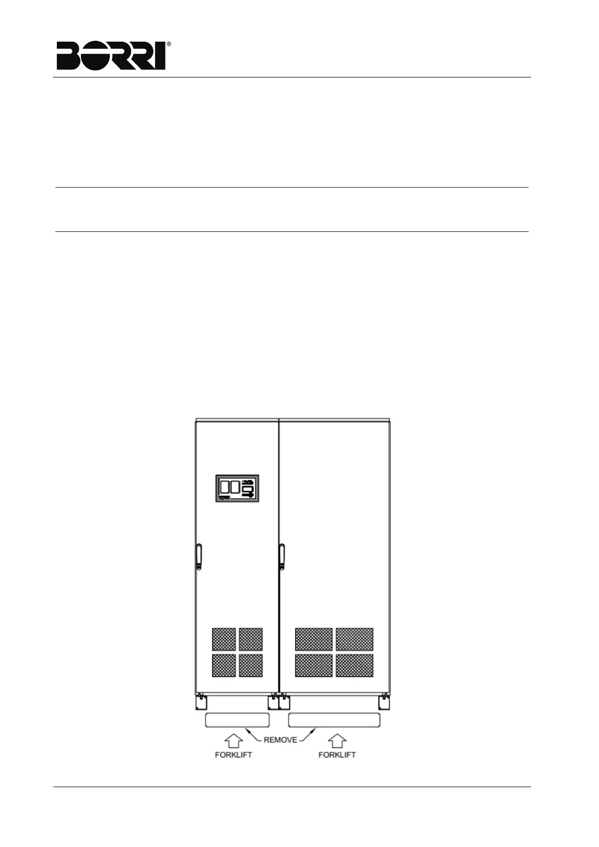 off (manually), the lower frontal panel, so that a pallet truck or a forklift can be inserted