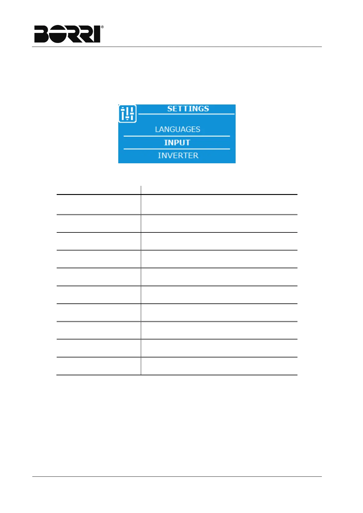 entered, you access the Settings page with a list to scroll of the pages which can be