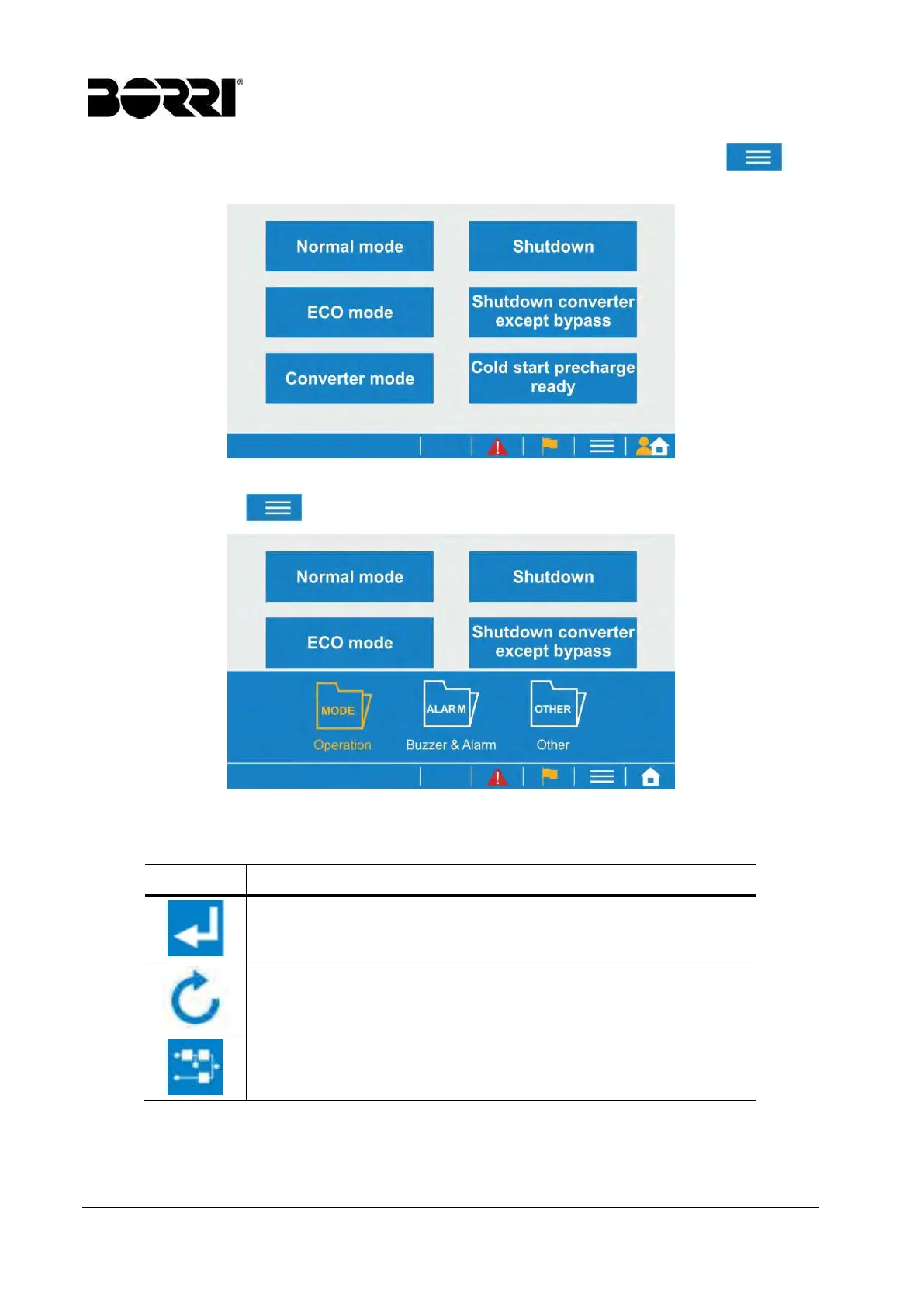 Each menu also contains sub-sections, which can be accessed by pressing the icon .
