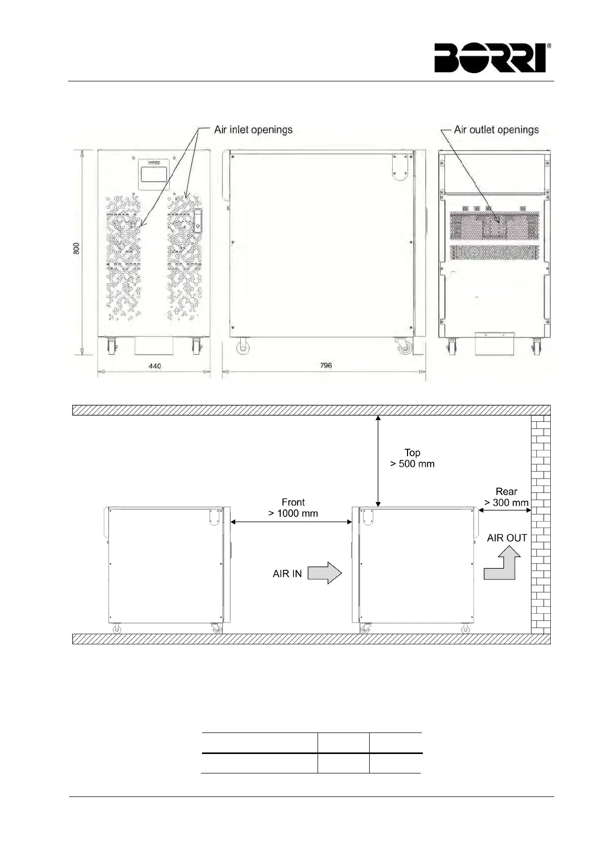 The table below shows the air volume required for an optimal ventilation and cooling of the