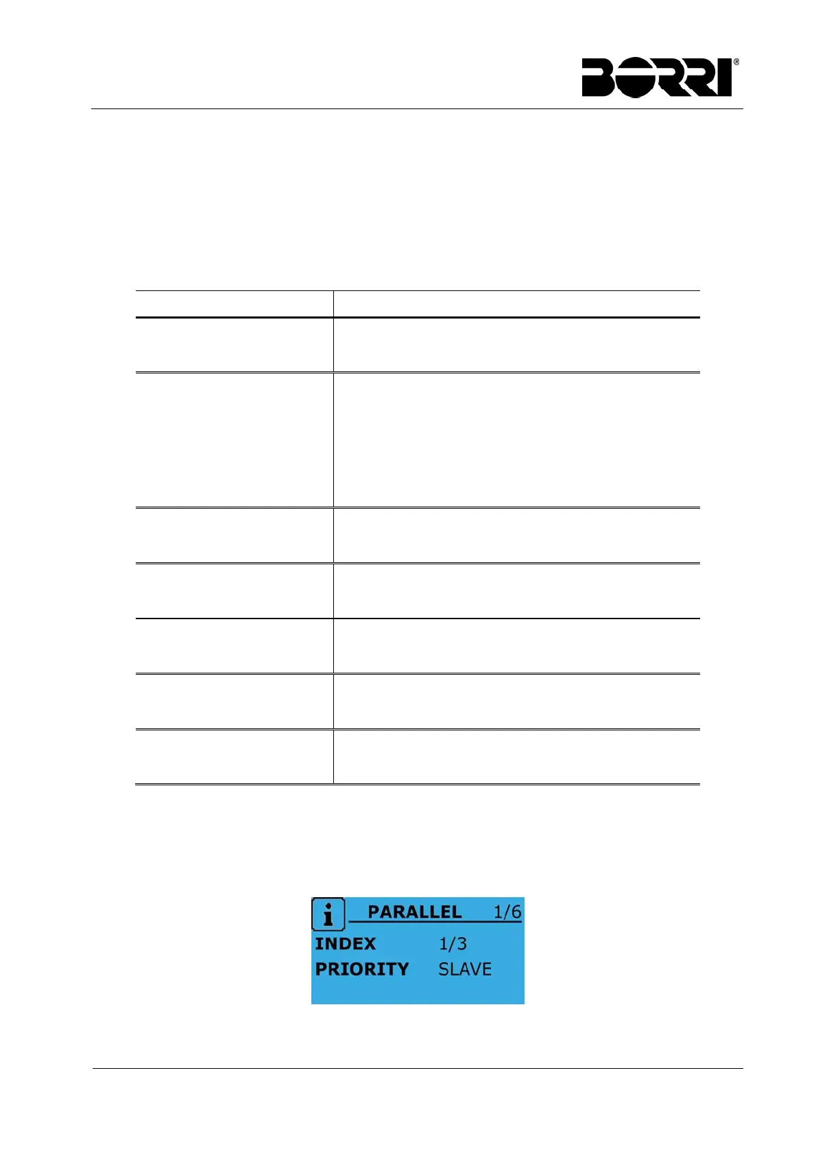 The PARALLEL menu is only active if the UPS belongs to a parallel or load-sync system.