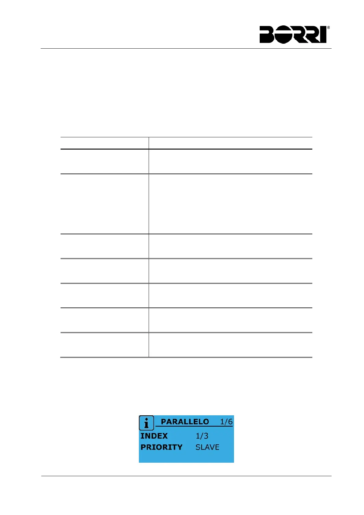 Il menù PARALLELO è attivo solamente se l’UPS fa parte di un sistema parallelo oppure