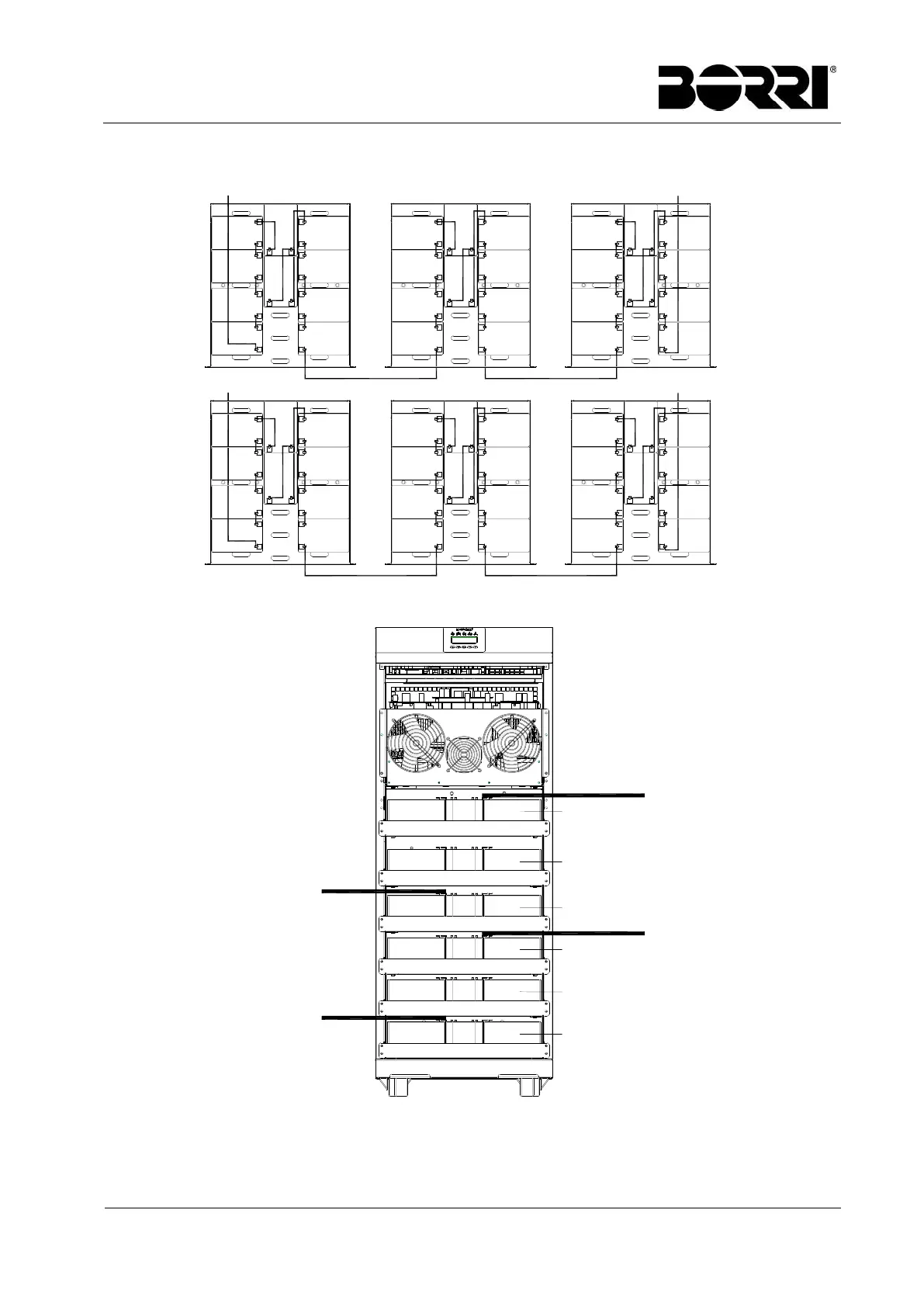 Figura 16 - 60 x 12Ah 12V connessione vassoi batterie vista frontale