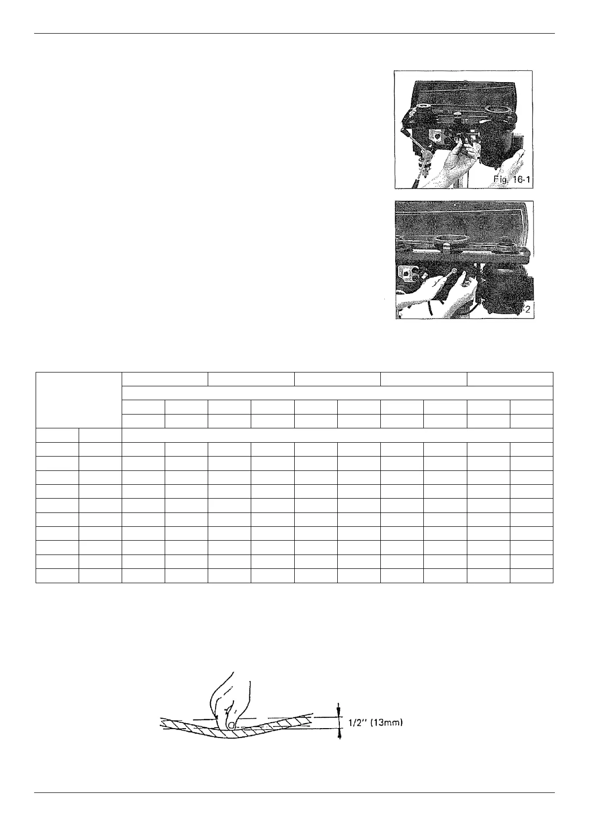 Correct belt tension: Use 4.5kg’s of hand pressure on the belt as shown below. The distance is 1/2” (13mm) + 10%