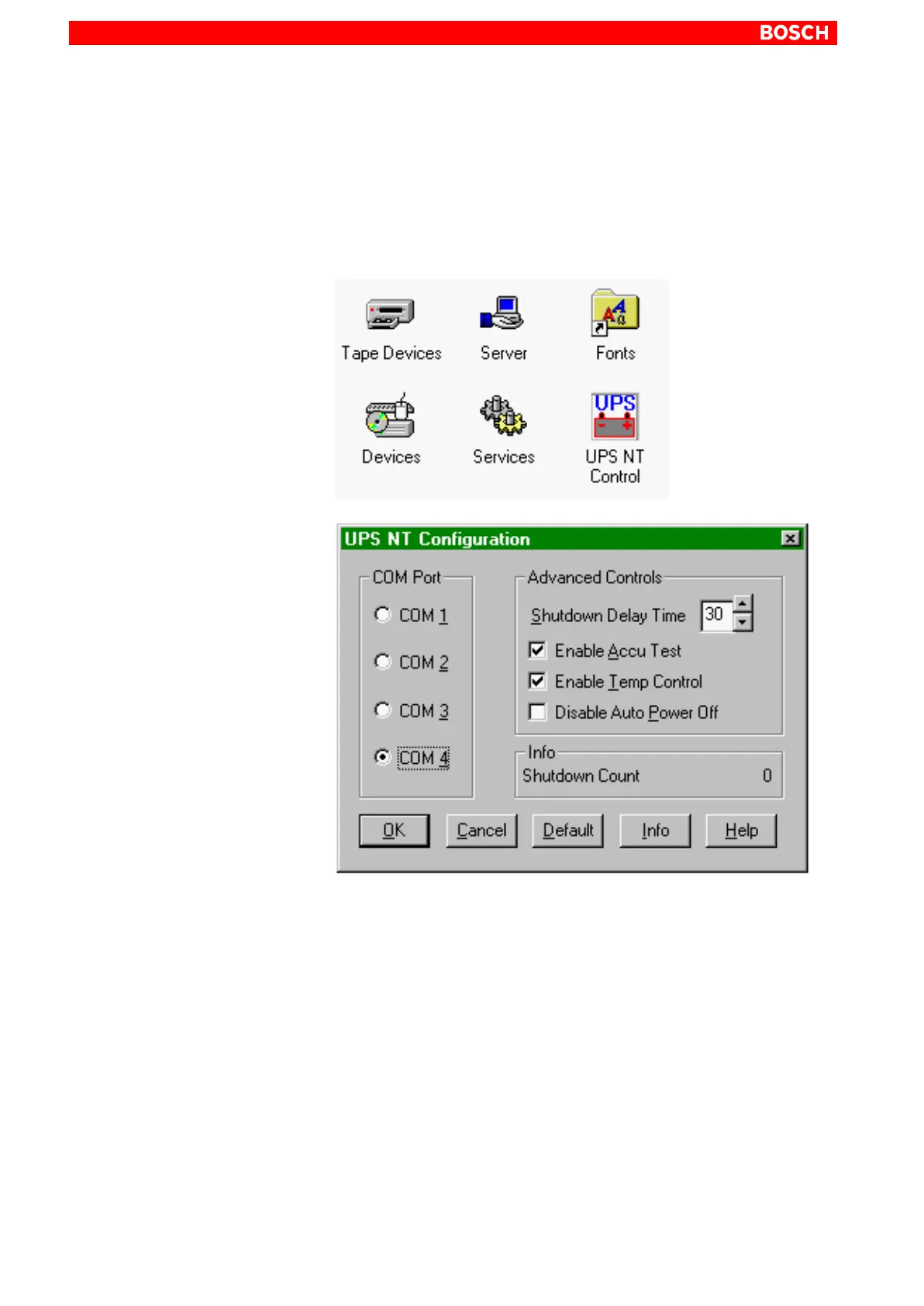 program, select UPS NT Control in the control