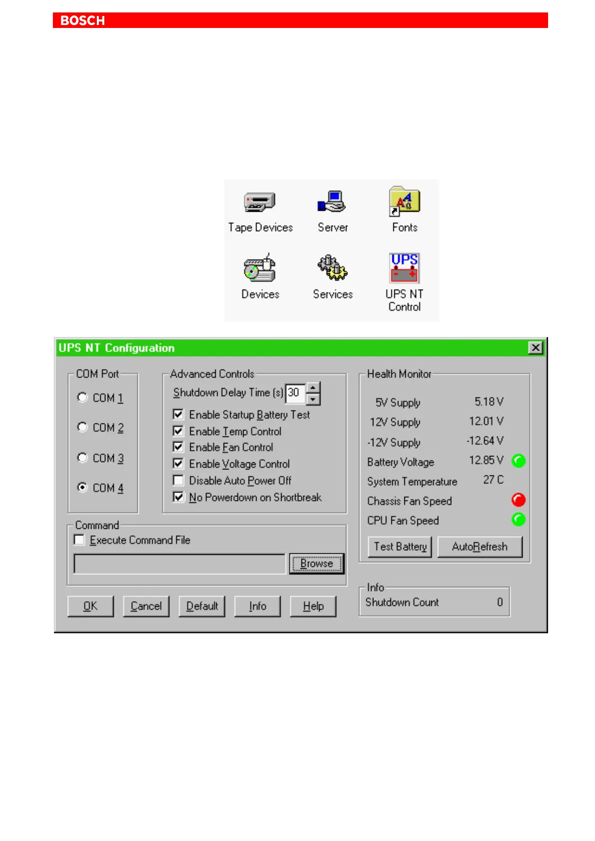 The UPS program is always connected to the UPS via the COM4 serial port.