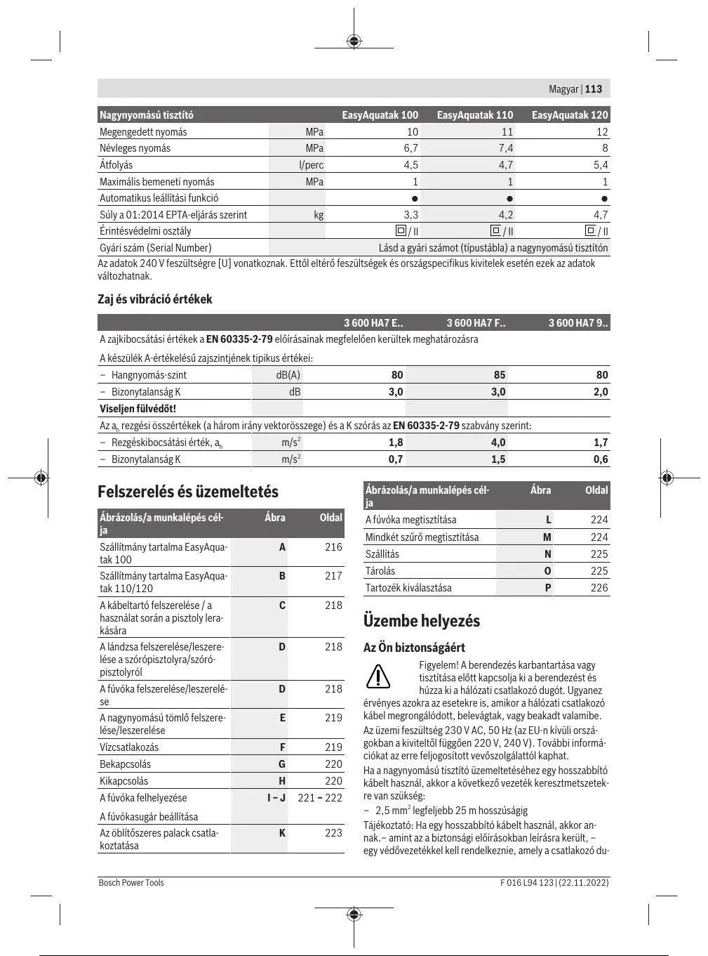 A zajkibocsátási értékek a EN 60335-2-79 előírásainak megfelelően kerültek meghatározásra
