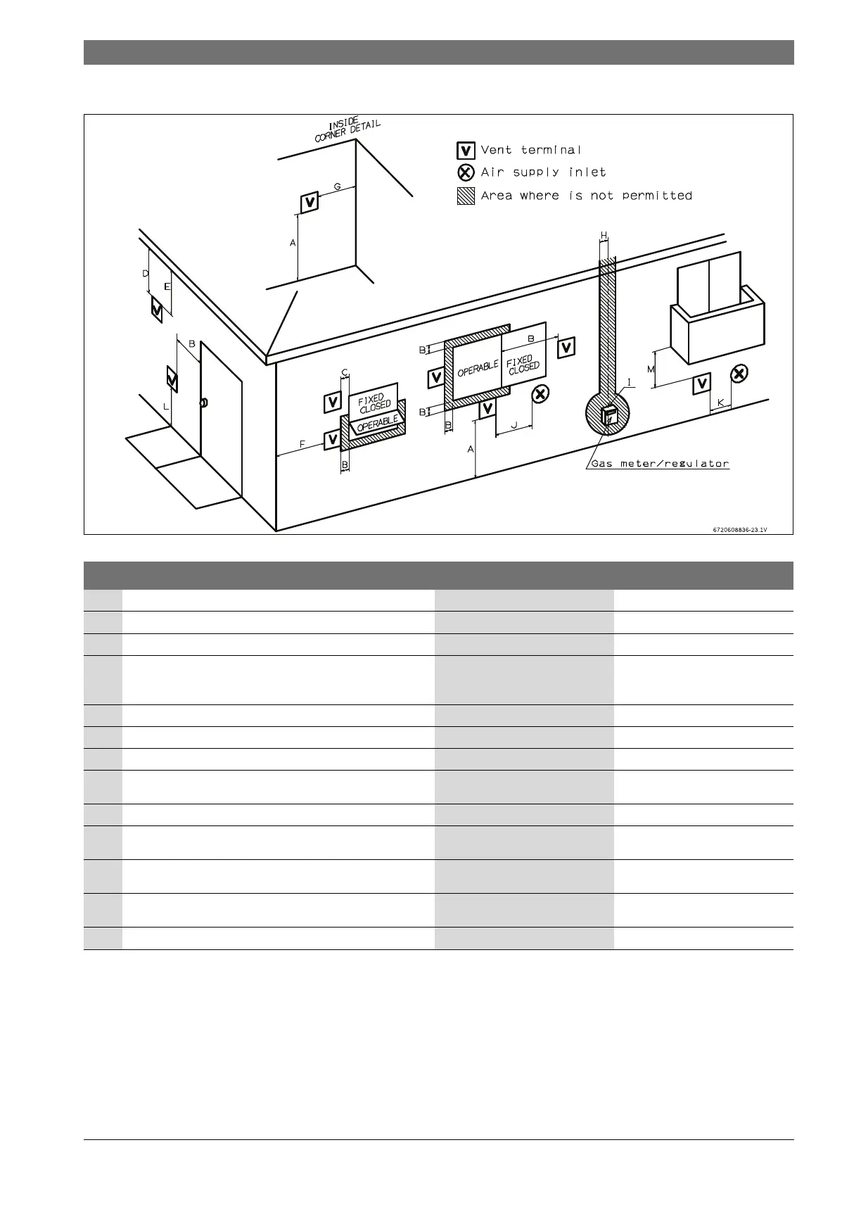 K Clearance to mechanical air supply inlet 72 in. 36 in. above if within 10 feet