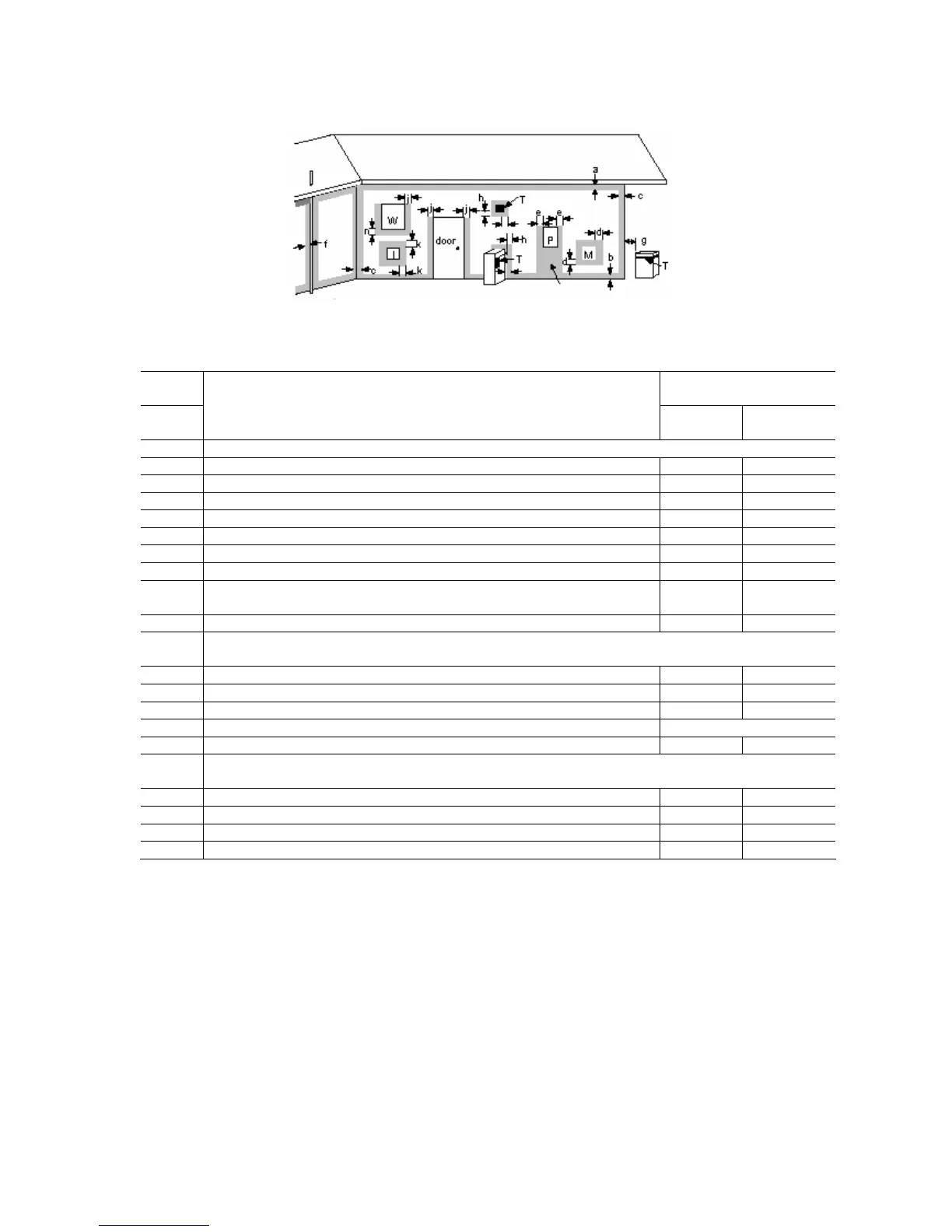 I = Mechanical air inlet P = Electrical meter or fuse box W = Window
