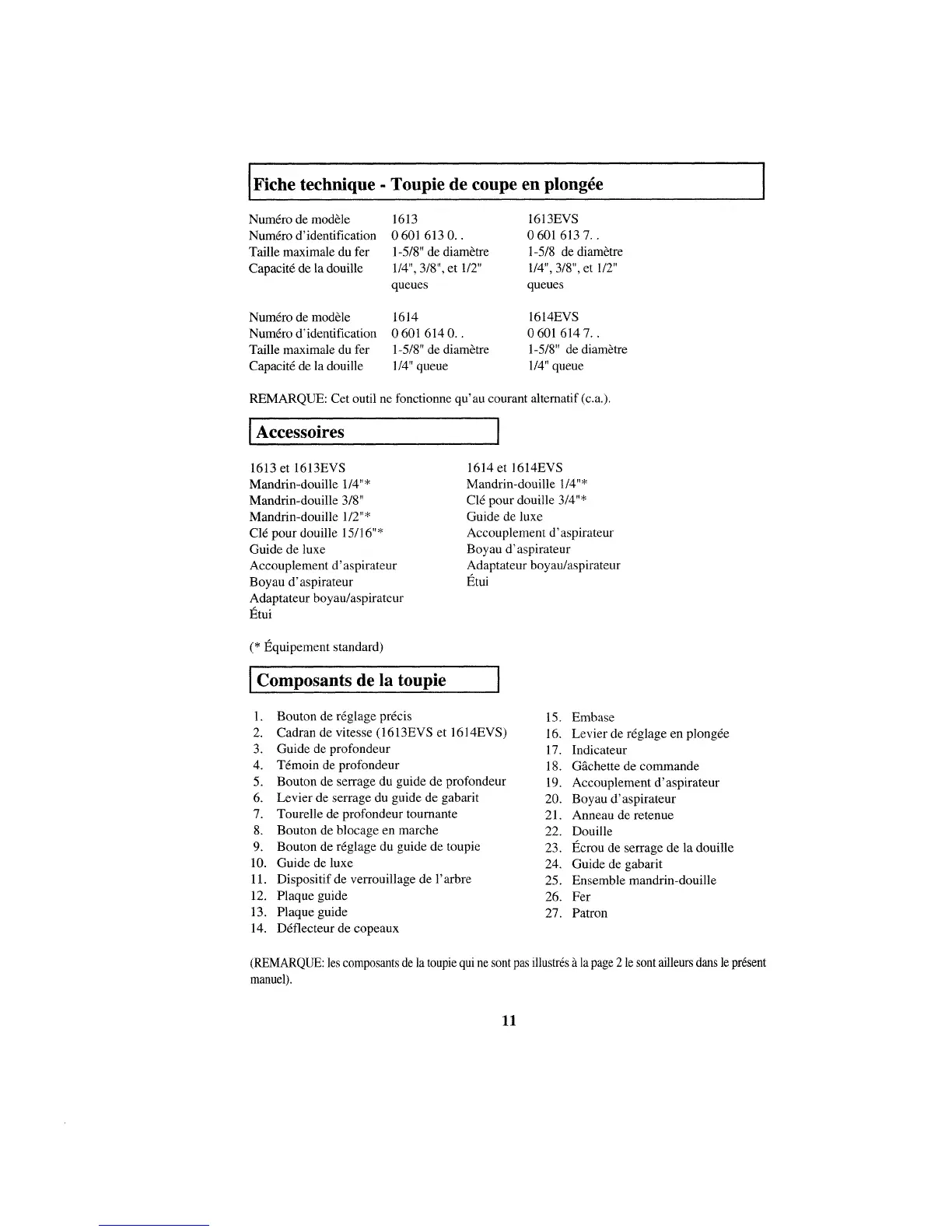 (REMARQUE: les composants de la toupie qui ne sont pas illustrds h la page 2 le sont ailleurs dans le pr4sent