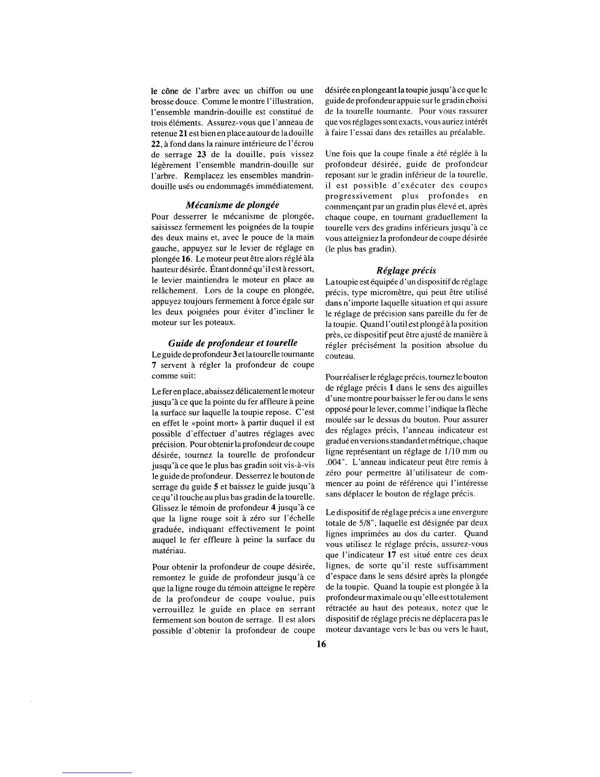 La toupie est 6quip6e d'un dispositif de r6glage