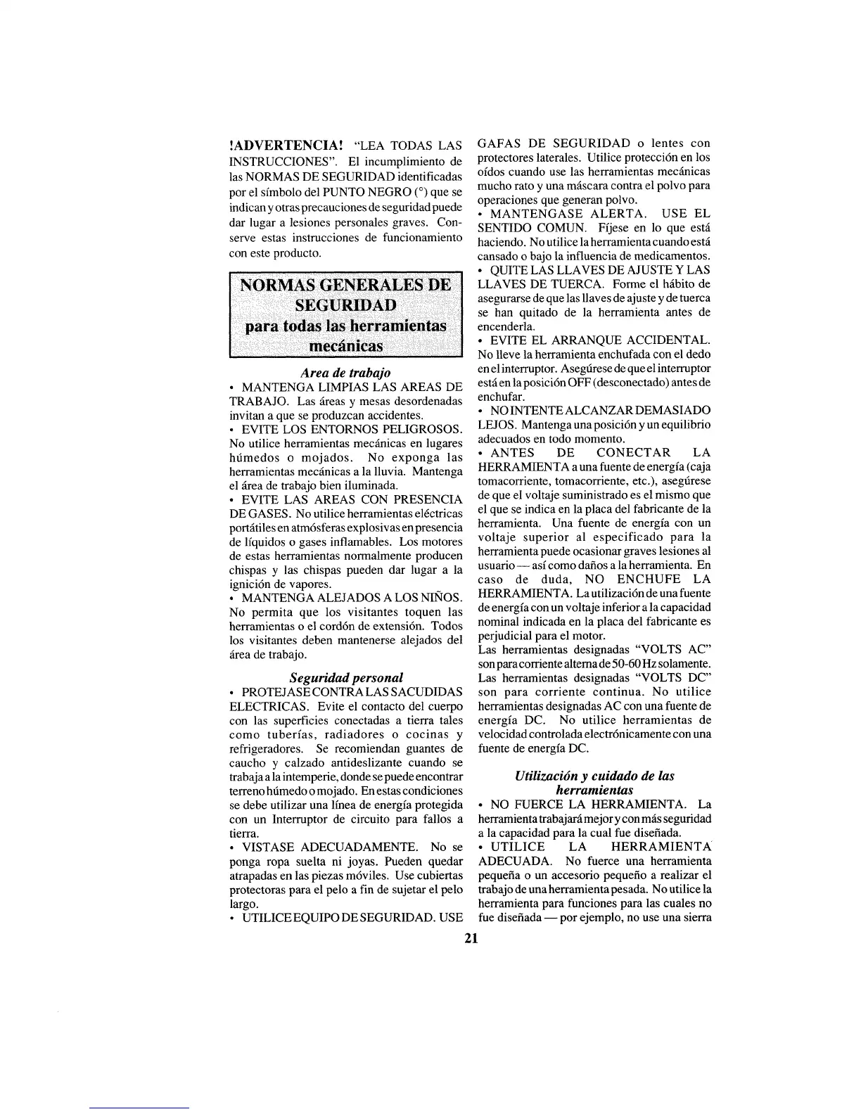• UTILICE EQUIPO DE SEGURIDAD. USE