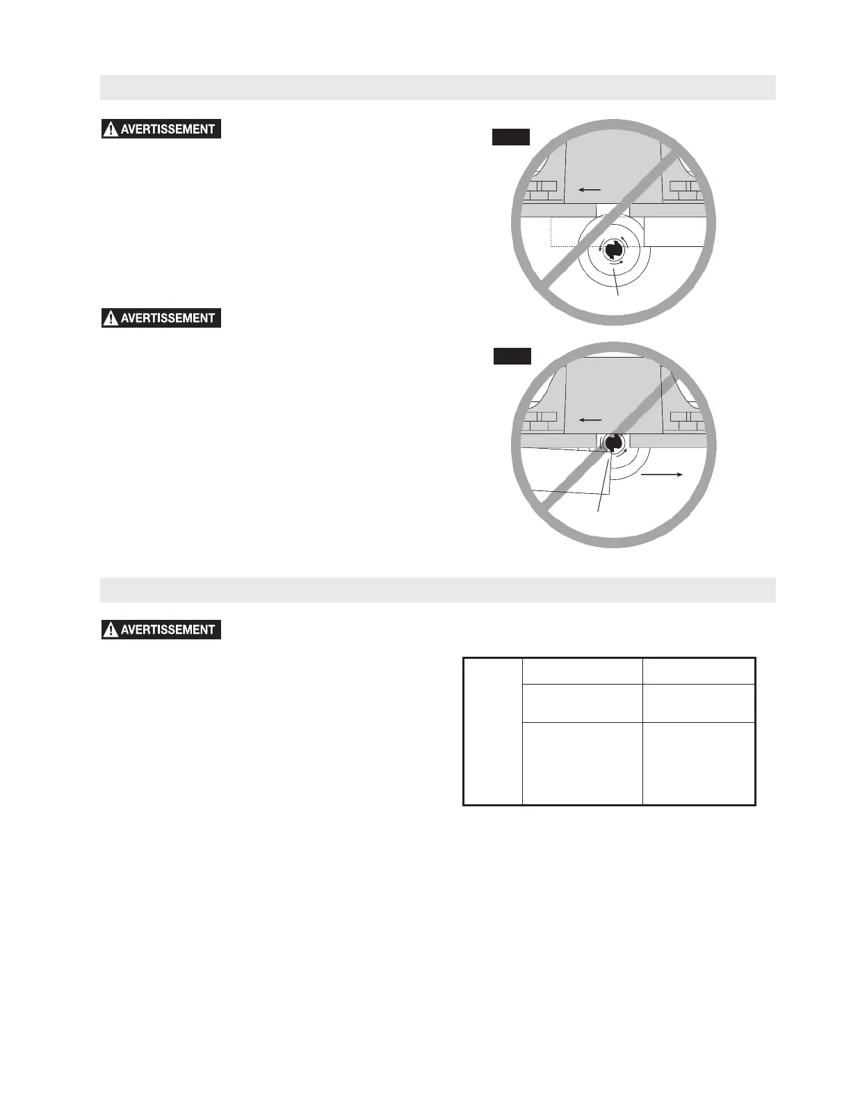 la table et peut entraîner une perte de contrôle pendant