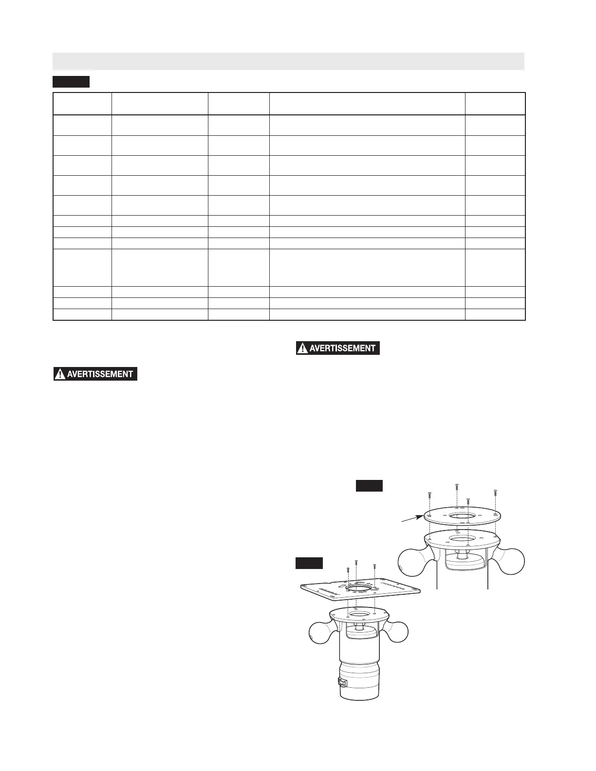 ment fixée à la base de la table à toupie. Lorsque vous