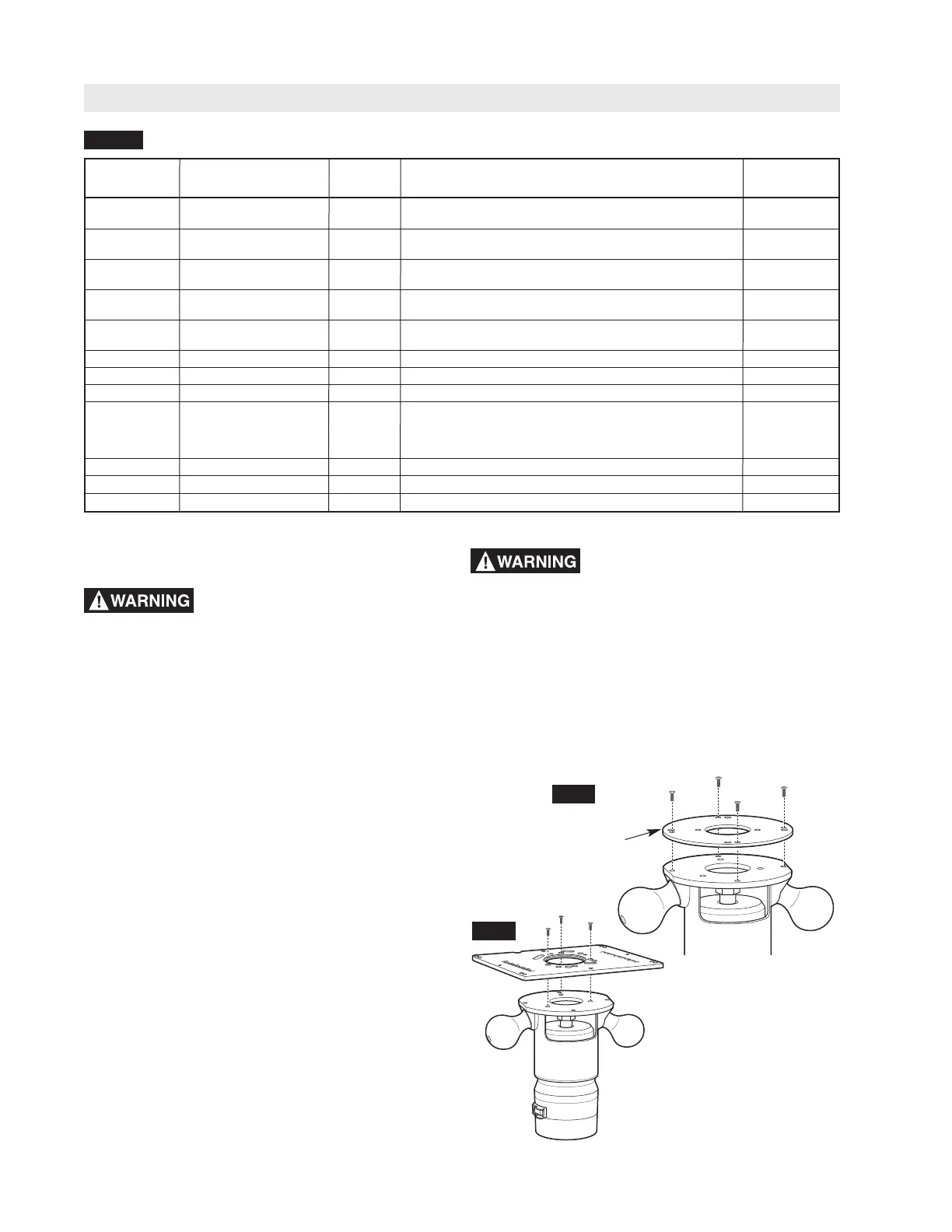mounting. If the router, plate, and fasteners do not