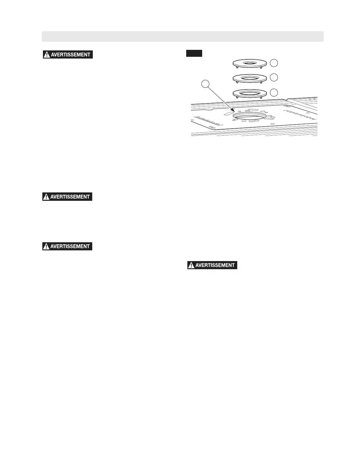 des bagues d’insertion de la surface de la table. Les