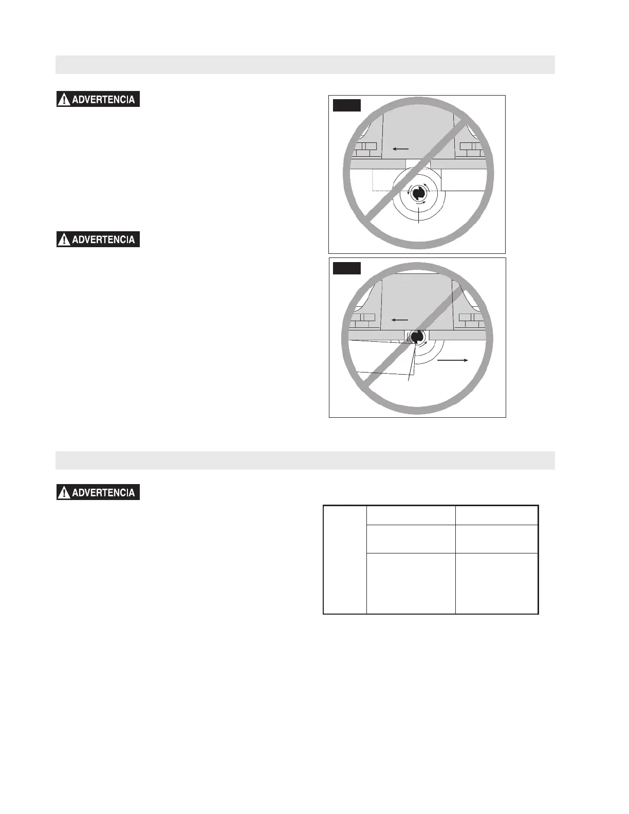 No alimente la pieza de trabajo