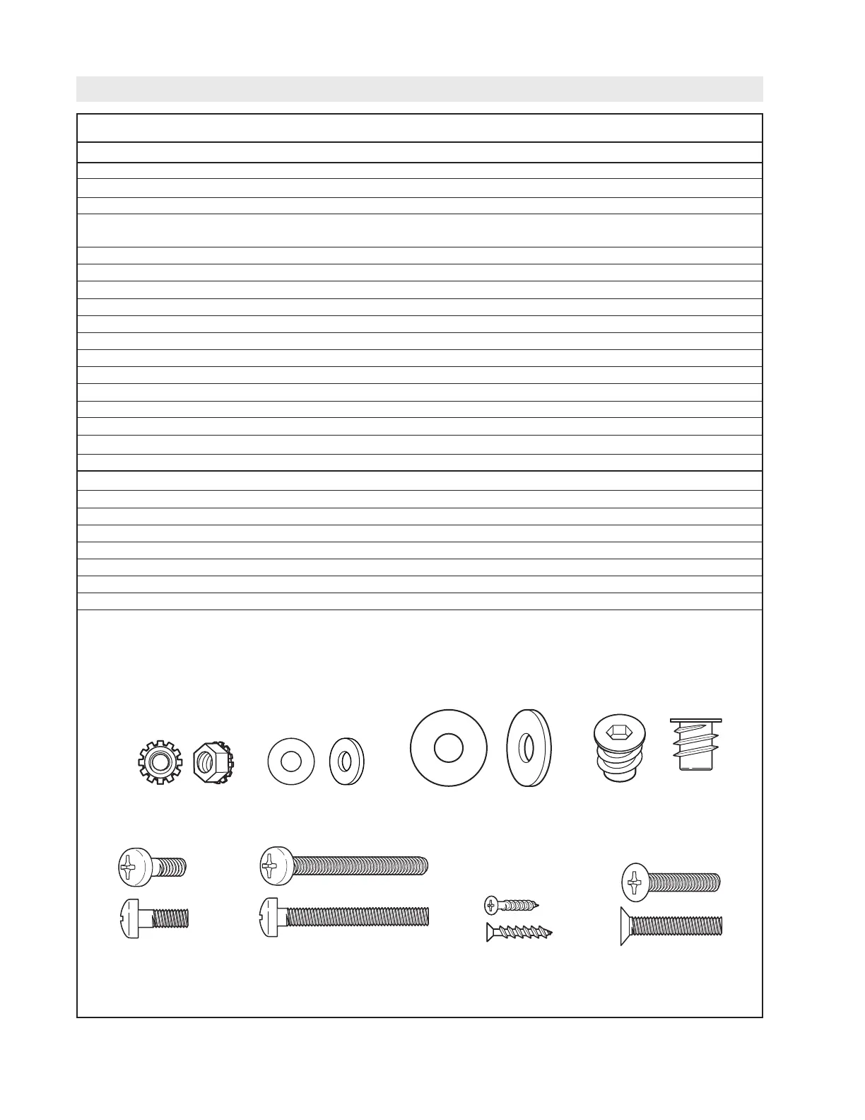 ensambladura de este modelo. Consulte la lista de partes anterior para verificar las cantidades y los tamaños correctos que se