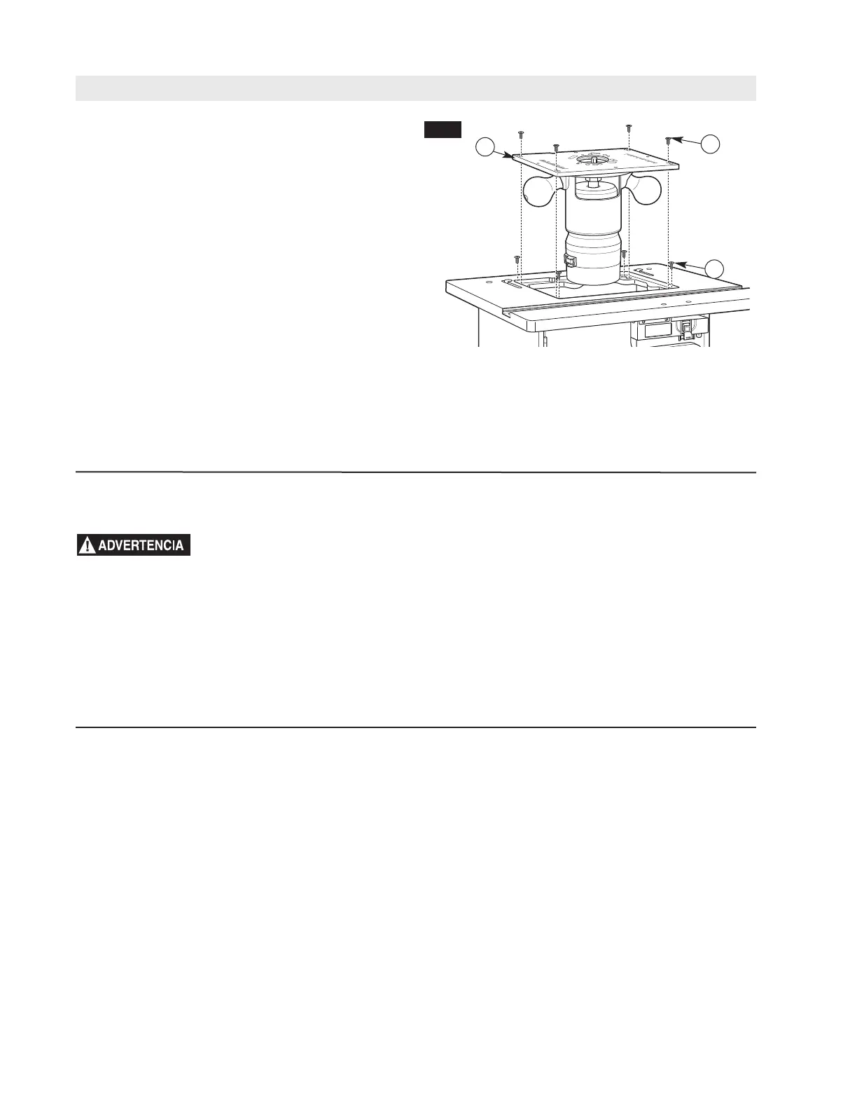 esté al ras de la superficie de la mesa. Girar los tornil-