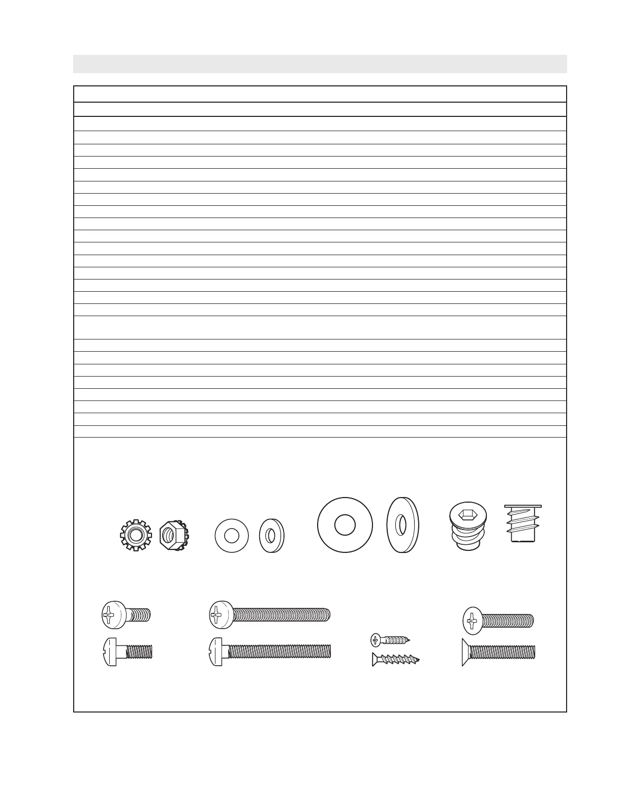NOTE: The hardware bag contains fasteners for several models. Some fasteners may not be used in the