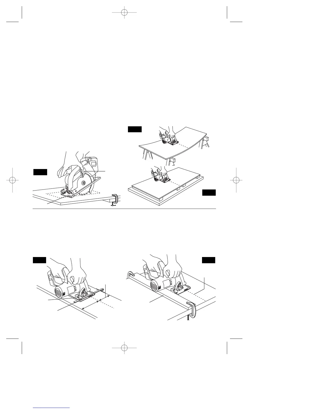 coupe en poussant la scie vers l’avant jusqu’à la fin de la