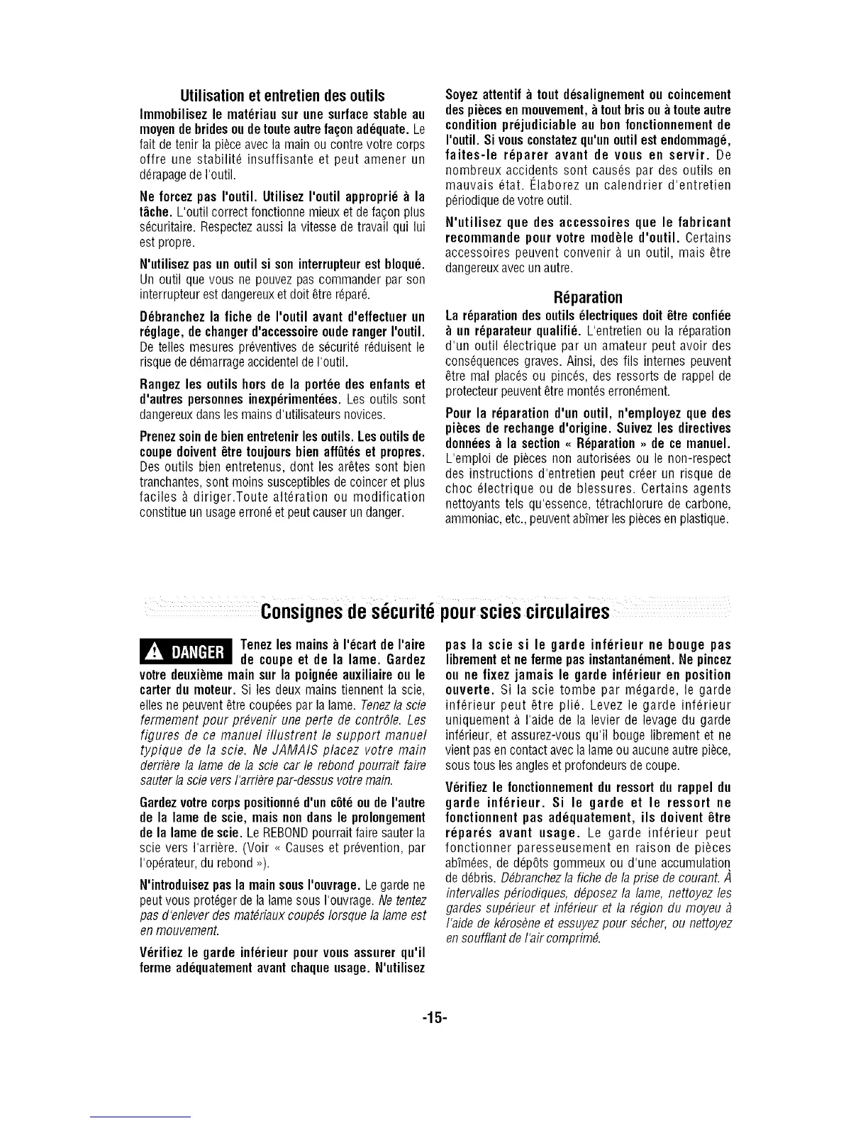 scie vers I'arri_re. (Voir <<Oauses et prevention, par