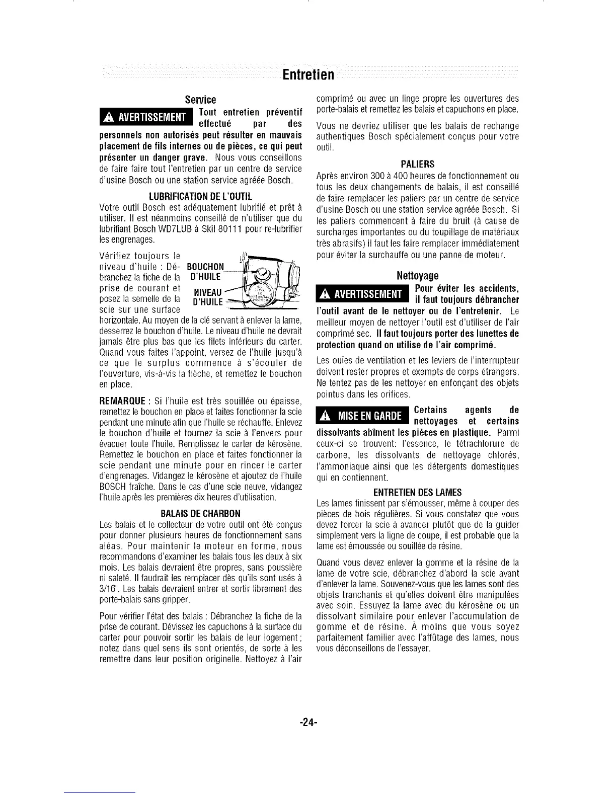 BOSOHfrafche. Dans le cas d'une scie neuve,vidangez