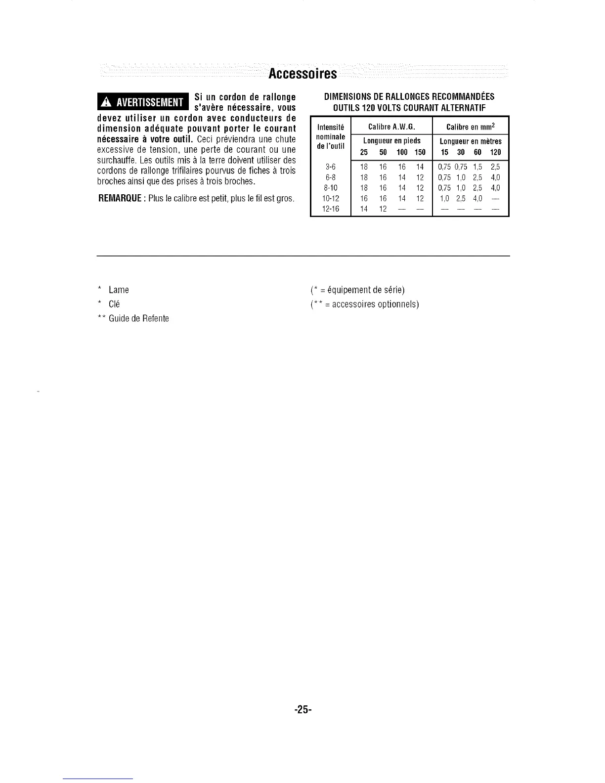 (** = accessoires optionnels)