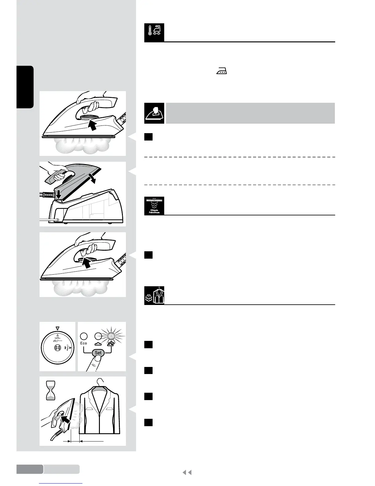 1 Select “Turbo” mode turning the ironing programme